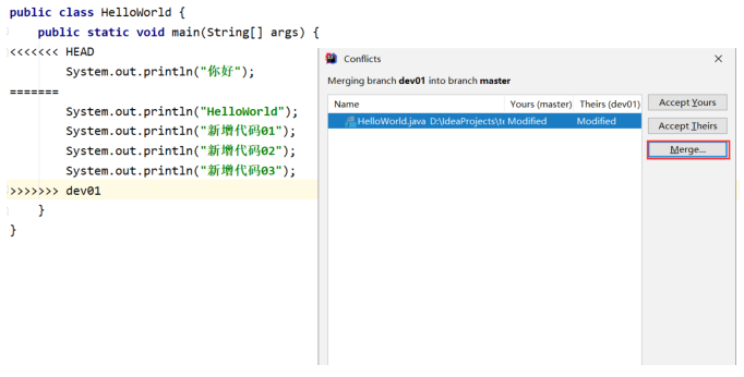 - 重新add冲突文件并commit到本地仓库,重新push到远程
