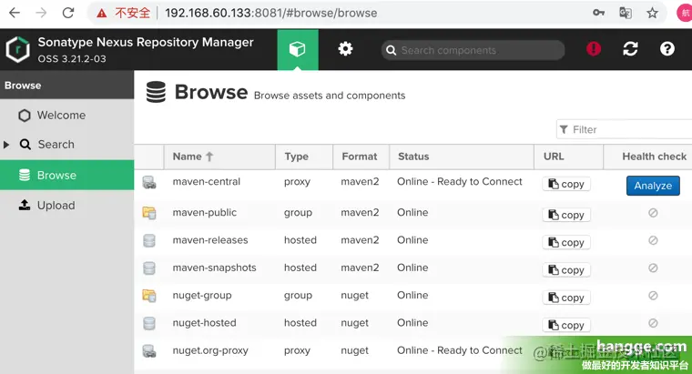 - group:这是一个仓库聚合的概念,用户仓库地址选择 Group 的地址,即可访问 Group 中配置的,用于方便开发人员自己设定的仓库。maven-public 就是一个 Group 类型的仓库,内部设置了多个仓库,访问顺序取决于配置顺序,3.x 默认为 Releases、Snapshots、Central,当然你也可以自己设置。